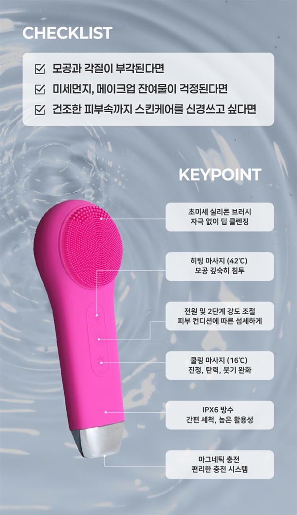 초미세 실리콘 브러쉬로 모공 속까지 자극없이 깔끔하게~!!